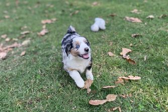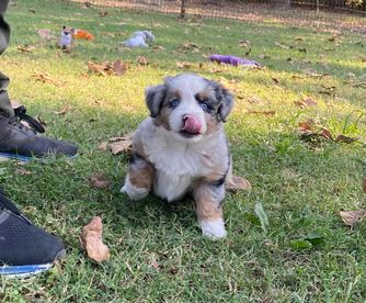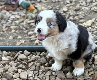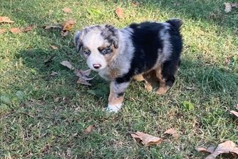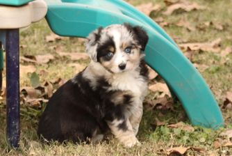 Our Toy Australian Shepherd puppies include black tri, blue merle, red merle, and red tri. Miniature Australian Shepherd puppies include blue merle, black tri, red tri, and red merle. Colors will vary depending on the parent dogs.