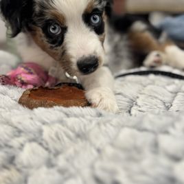 Our daughter had always dreamed of having a Mini Australian Shepherd, and after searching high and low for the right breeder, we found the perfect fit with Cindy. She was simply wonderful to work with—warm, responsive, and incredibly communicative from the very beginning. Throughout the entire process, she kept us updated with regular photos and videos of our puppy, Livvy, which made the experience so exciting and personal. Cindy even helped connect us with a flight nanny, making Livvy’s arrival smooth and stress-free. From the moment she arrived, it was clear that Livvy had been well-socialized and raised with love. She’s a sweet girl with a gentle temperament who loves to play and snuggle. We couldn’t be happier!