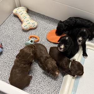 We found Taryn when we were looking for a new puppy. We have always liked cocker spaniels, but decided we wanted to have an English Cocker Spaniel this time, as opposed to the American version. We started looking after our older cocker spaniel passed away while we were out of town. We contacted Taryn while were were overseas, and was surprised to hear back from her so quickly. She always responded quickly to all of our questions - even taking time out of her day to have us call her directly to verify some things. We are overjoyed with our new English Cocker Spaniel, Ginger. She really is a sweetheart and her tail constantly wags. When she's really excited, her hips start moving too. She loves everybody, so we know that Taryn took the time to start training her, and also to socialize her. She has been an excellent addition to our family. We highly recommend Taryn if you are looking for next best friend!