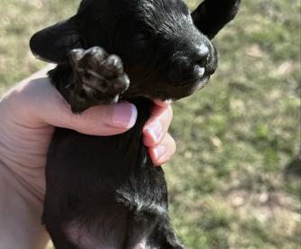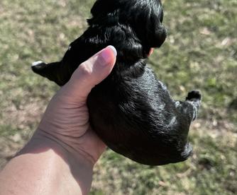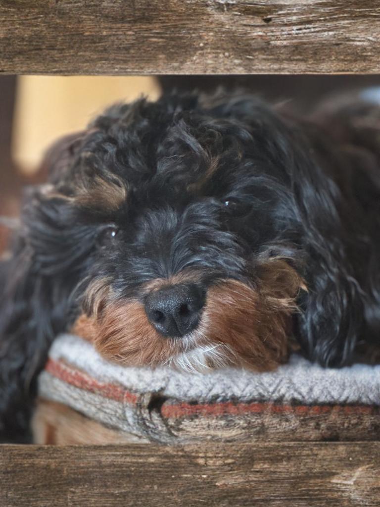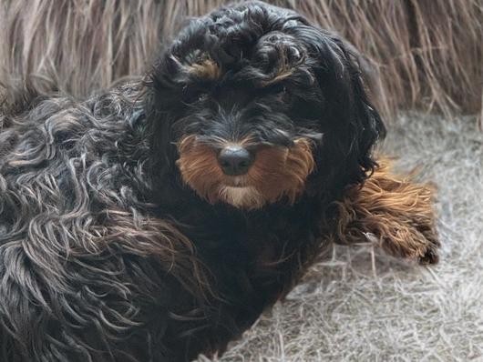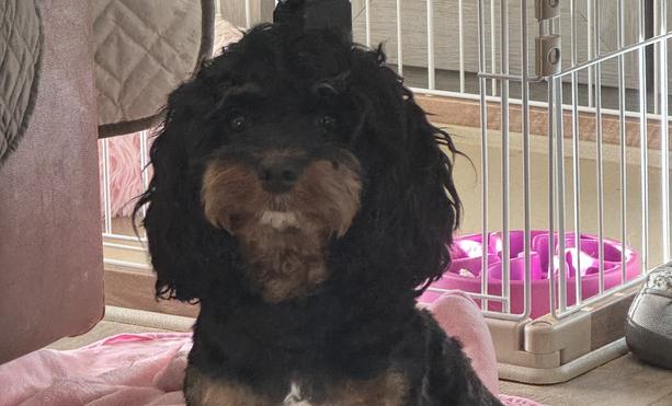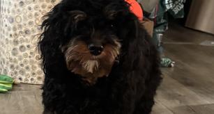 Raven is an F1 Cavapoo. She is gentle-natured and loves to take naps in my lap. She loves cuddles and belly rubs, and playing with her poodle and cat friends. She is calm and has a patient demeanor and is great with kids of all ages. She has had her health and genetic testing done by Embark.
