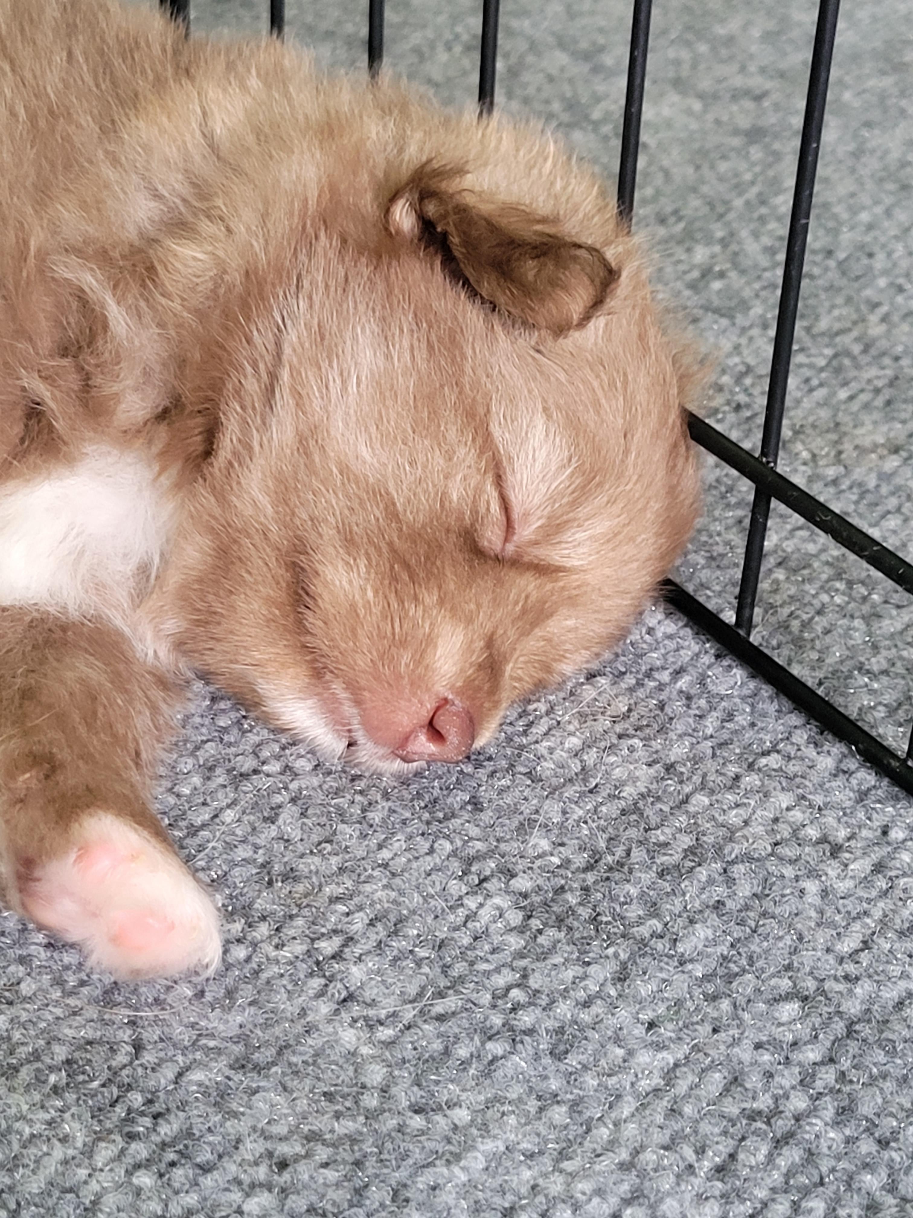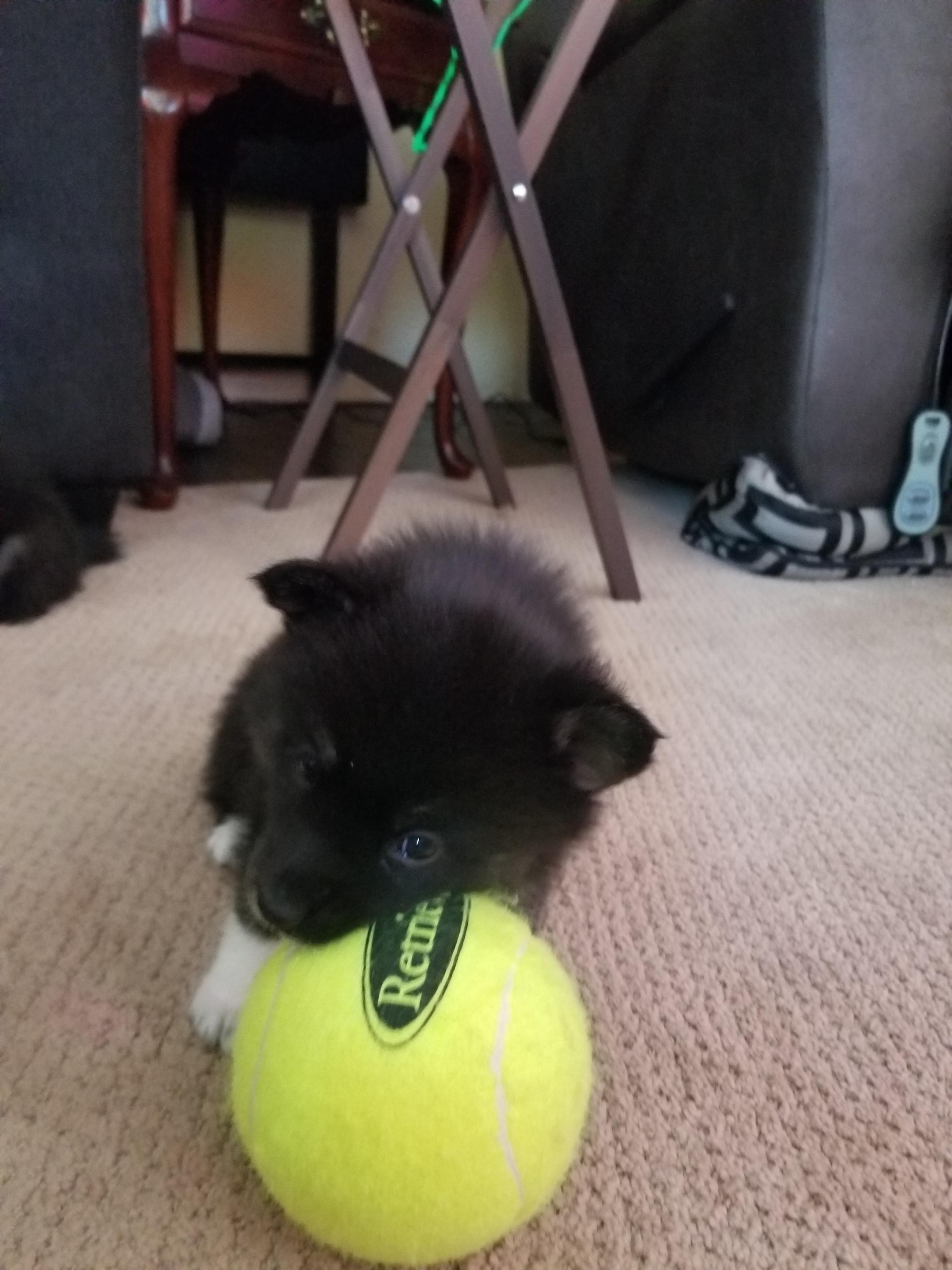 Our love for pomskies led us to enter the world of breeding. We were lucky enough to find a rare red colored male to match with Sasha. Our first litter was born on January 6th 2022.