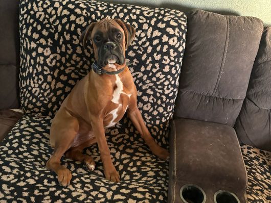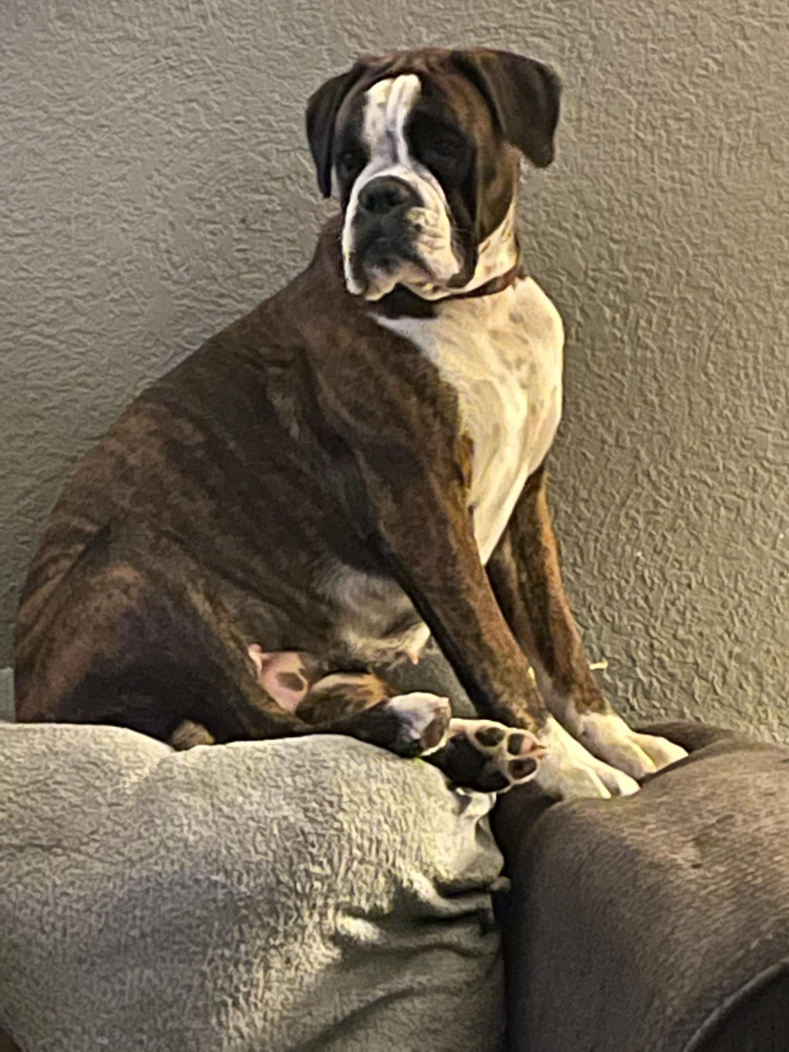 Chili is a female Boxer. Carefully selected as a great representative of her breed, Bob decided to make her part of their program. Bob has passed Good Dog’s screening process, which involved a review of their breeding practices, environment, and the mental and physical health of their dogs.