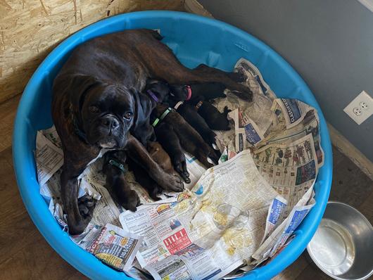 Stoli is a female Boxer. Carefully selected as a great representative of her breed, Bob decided to make her part of their program. Bob has passed Good Dog’s screening process, which involved a review of their breeding practices, environment, and the mental and physical health of their dogs.