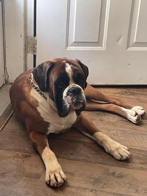 Juno is a female Boxer. Carefully selected as a great representative of her breed, Bob decided to make her part of their program. Bob has passed Good Dog’s screening process, which involved a review of their breeding practices, environment, and the mental and physical health of their dogs.