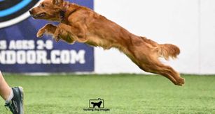 Twist (Dynamic Never Grow Up RN DE DM TKI ISD SSS) is a smaller, well balanced golden with a lot of drive for any sport she participates in. She competes in Agility and Nose Work and her biggest passion is Dock Diving, where her personal best is 26'0"!