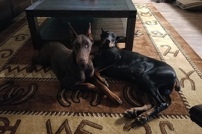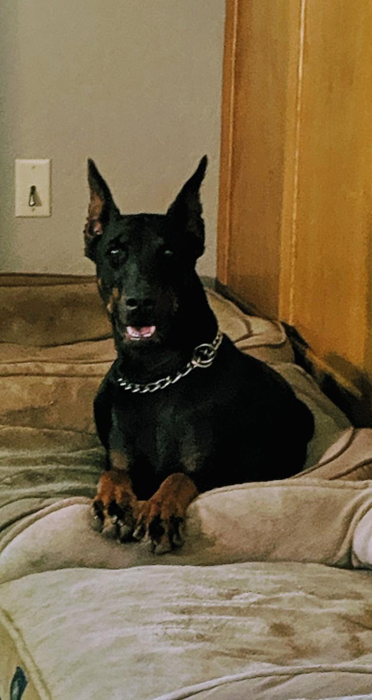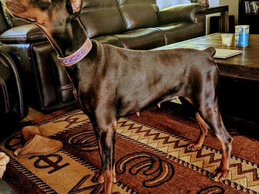 Max is a male Doberman Pinscher. Carefully selected as a great representative of his breed, Shauna decided to make him part of their program. Shauna has passed Good Dog’s screening process, which involved a review of their breeding practices, environment, and the mental and physical health of their dogs.