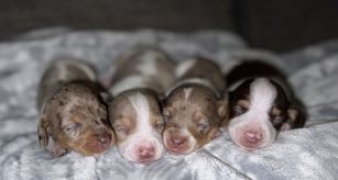 Our puppies are dapple. Colors will vary depending on the parent dogs.