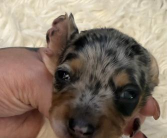 Dachshund puppies are miniature size. Sizes will vary depending on the parent dogs.
