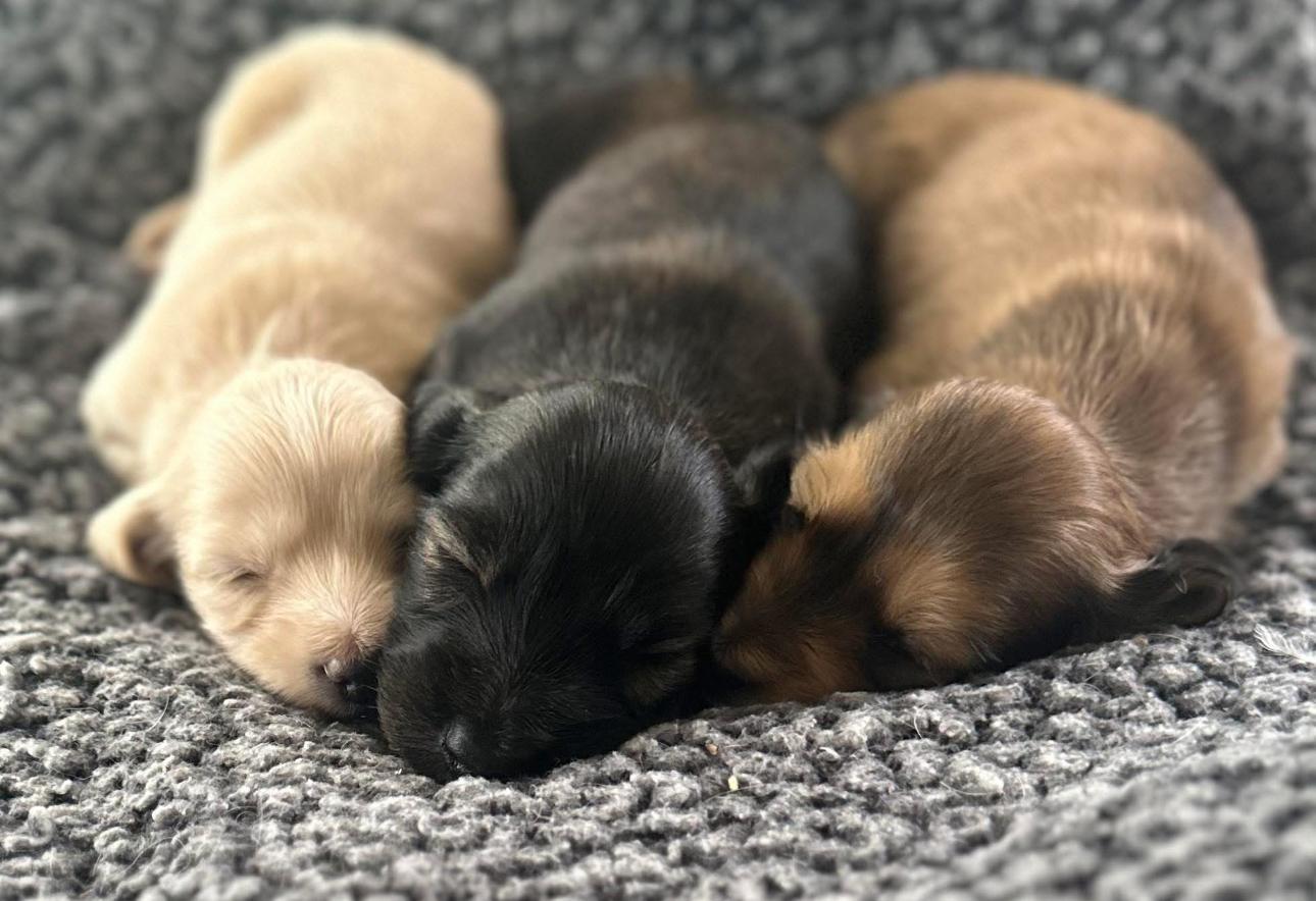 Dachshund puppies include smooth and longhaired coat varieties. Coat types may vary depending on the parent dogs.