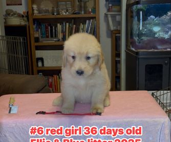 The whole process went wonderful with Sabrina's golden retrievers. From the start Sabrina answered all questions that we had and was very knowledgeable about the breed. This was my first puppy and she had great advice. Pick up was smooth and it was obvious that he was well cared for. He sleeps in his crate well and has picked up training so well. We are so grateful we got Clifford from Sabrina and would definitely recommend.