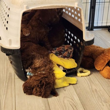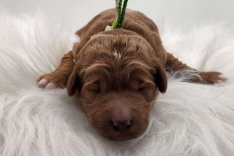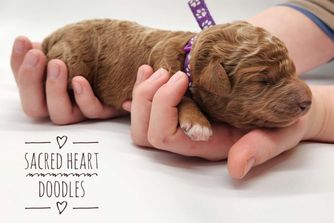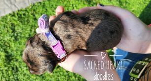 I'm Joell C., the breeder behind Sacred Heart Doodles located in Webster, NY. We love this breed and the experience of having litters! Our mission is to raise pups that are set to become the best companions. We work hard to breed exemplary dogs that are well taken care of from day one and are prepared to excel in loving and caring homes. We love our dogs and puppies, and we strive to place each pup in a home suited to their temperament and ability.