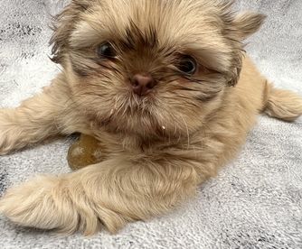 Toto is a male Shih Tzu. Carefully selected as a great representative of his breed, Jacobi decided to make him part of their program. Jacobi has passed Good Dog’s screening process, which involved a review of their breeding practices, environment, and the mental and physical health of their dogs.