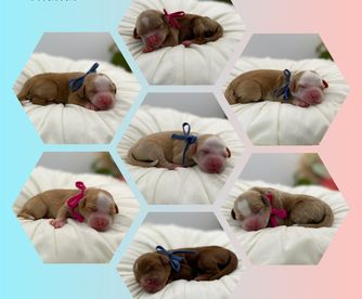 Our puppies include caramel, red, gold, apricot, chalk, chocolate, black, and tri-color. Colors will vary depending on the parent dogs.