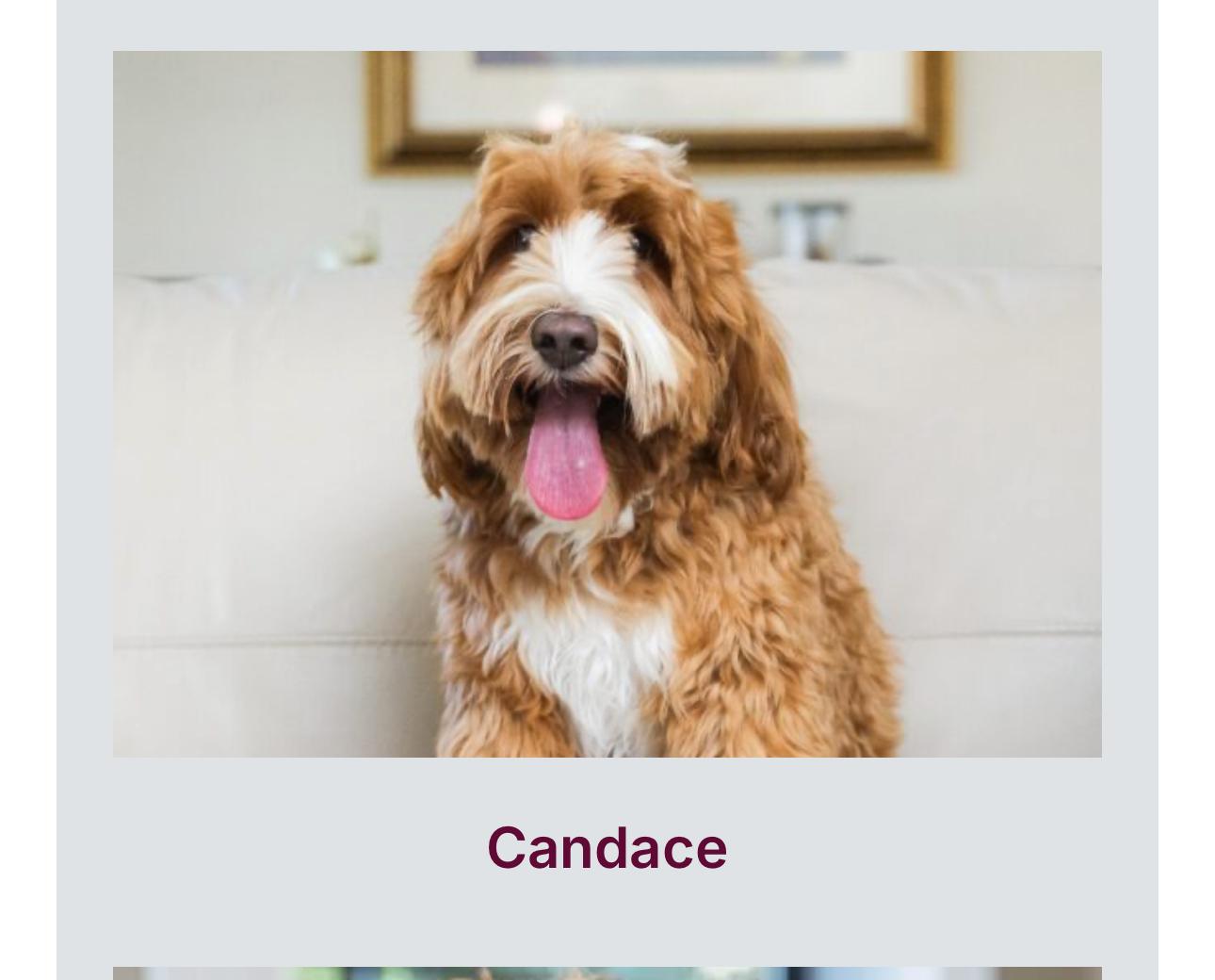 Candace is a female Australian Labradoodle. Carefully selected as a great representative of her breed, Joyce decided to make her part of their program. Joyce has passed Good Dog’s screening process, which involved a review of their breeding practices, environment, and the mental and physical health of their dogs.