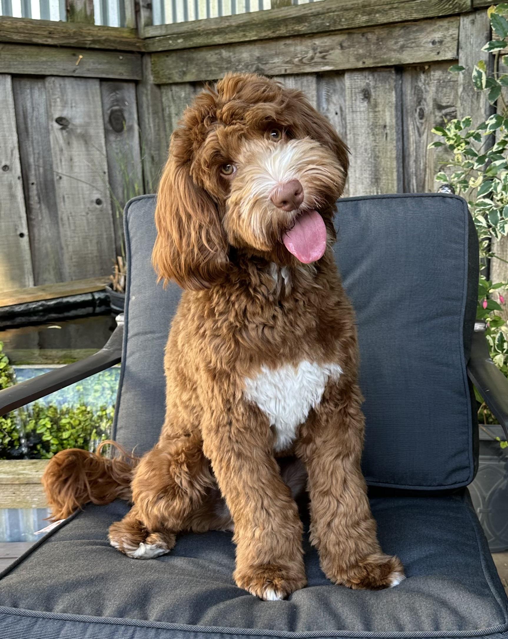 Stewart is a male Australian Labradoodle. Carefully selected as a great representative of his breed, Joyce decided to make him part of their program. Joyce has passed Good Dog’s screening process, which involved a review of their breeding practices, environment, and the mental and physical health of their dogs.