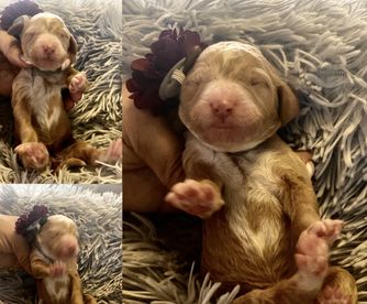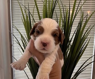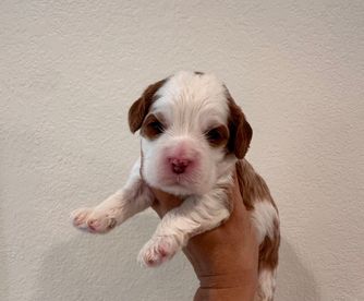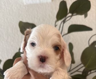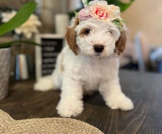 Our Poodle puppies include brown, red, white, and phantom. Cavapoo puppies include apricot, blenheim, white, and red. Colors will vary depending on the parent dogs.