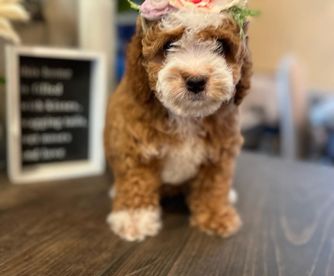 Bunny is a female Cockapoo. Carefully selected as a great representative of her breed, Luci & Miguel decided to make her part of their program. Luci & Miguel has passed Good Dog’s screening process, which involved a review of their breeding practices, environment, and the mental and physical health of their dogs.