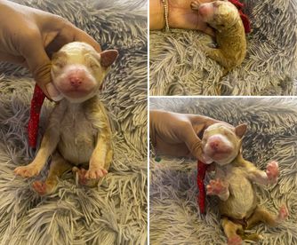 I would say what stood out the most in my mind is of course the beautiful puppy but the bag she brought with the starter kit and folder with birth certificate, parents pictures and my Sunshine’s information. She was a very friendly Breeder. Thank you for my Sparky’s and my Christmas present.
