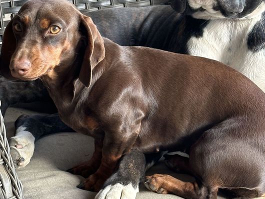 Shorty is a male Dachshund. Carefully selected as a great representative of his breed, Mia decided to make him part of their program. Mia has passed Good Dog’s screening process, which involved a review of their breeding practices, environment, and the mental and physical health of their dogs.