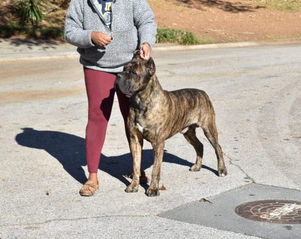Nasdaq is a female Cane Corso. Carefully selected as a great representative of her breed, Vickie decided to make her part of their program. Vickie has passed Good Dog’s screening process, which involved a review of their breeding practices, environment, and the mental and physical health of their dogs.