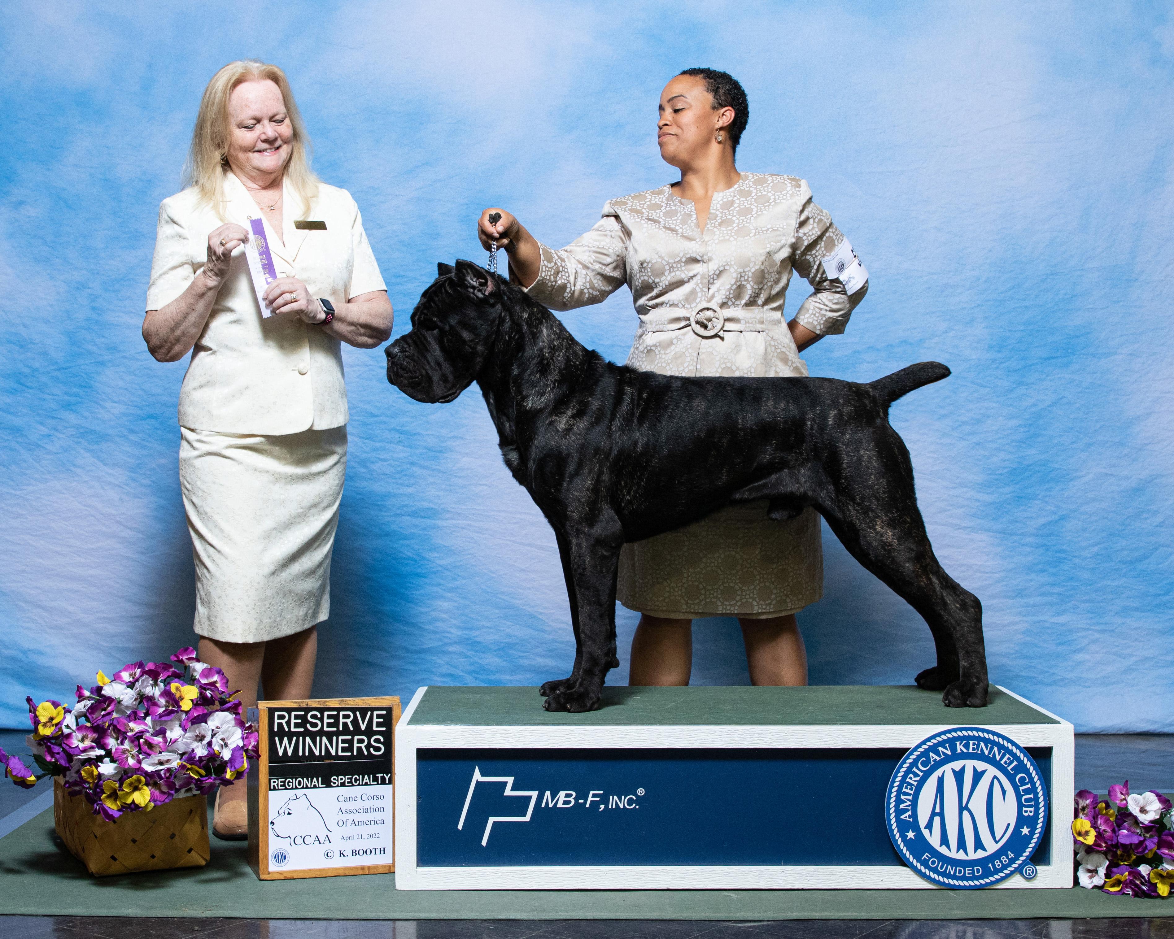 Mega is a male Cane Corso. Carefully selected as a great representative of his breed, Vickie decided to make him part of their program. Vickie has passed Good Dog’s screening process, which involved a review of their breeding practices, environment, and the mental and physical health of their dogs.
