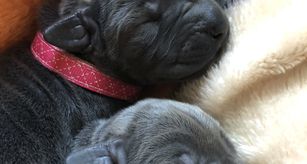 Our puppies include blue and black. Colors will vary depending on the parent dogs.