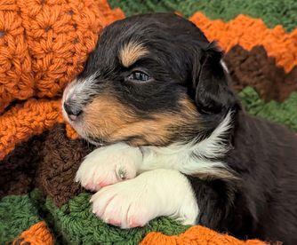 Our puppies are black tri-color. Colors will vary depending on the parent dogs.