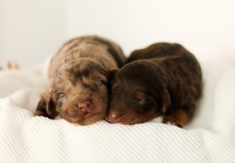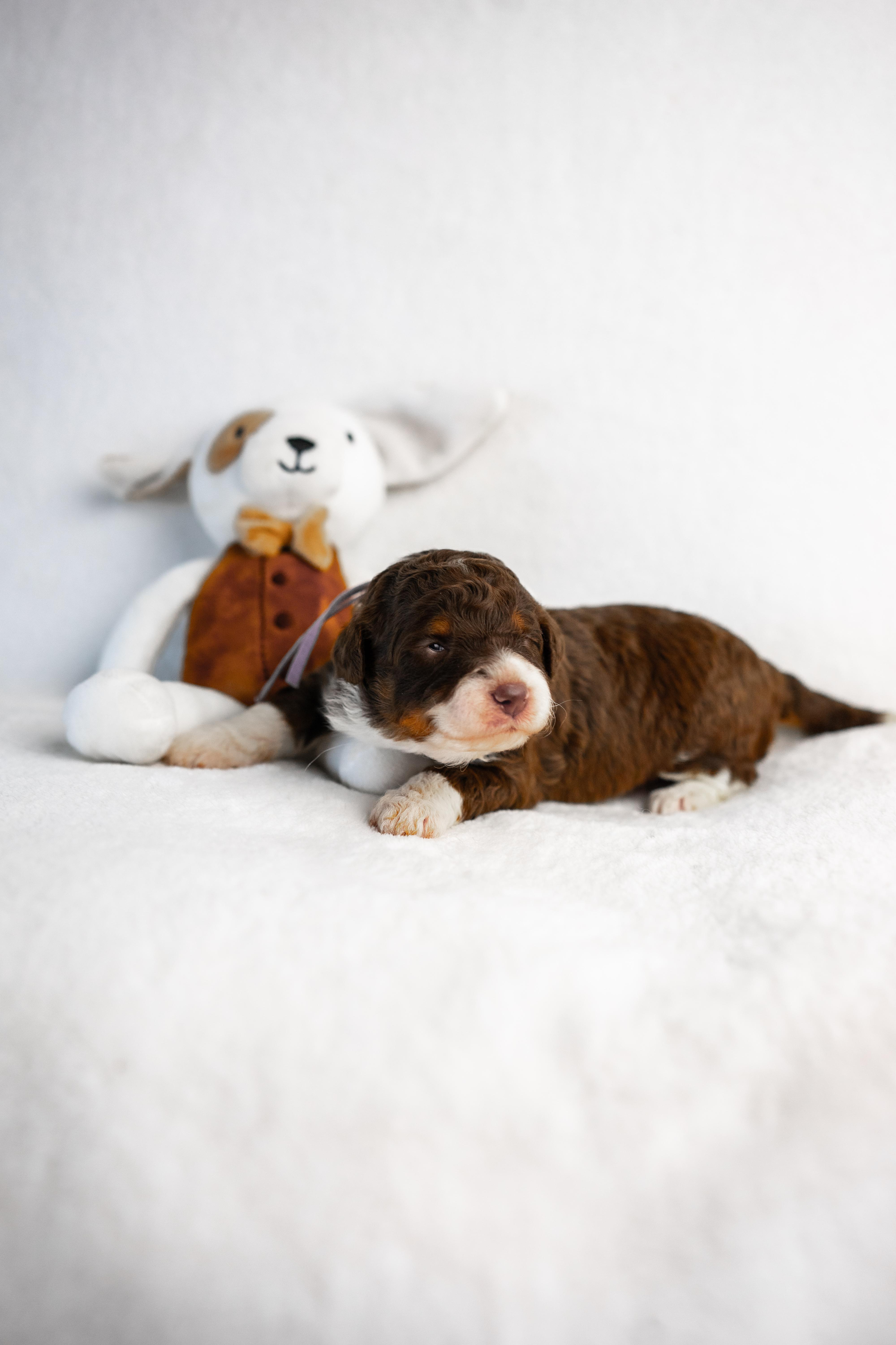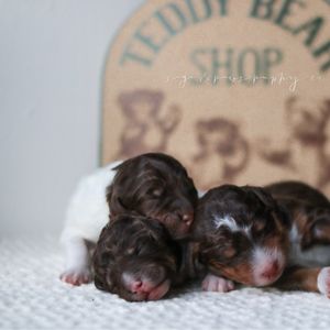 Our Cavalier King Charles Spaniel puppies include blenheim, ruby, and chocolate. Miniature American Shepherd puppies include red tri-color, black tri, red merle, and blue merle. Cavapoo puppies include merle, tri-color, red, cream, blenheim, chocolate, brown, and apricot. Aussiedoodle puppies include brown and white, apricot, blue merle, red merle, black phantom, black and white, black tri-color, red phantom, and red tri-color. Colors will vary depending on the parent dogs.