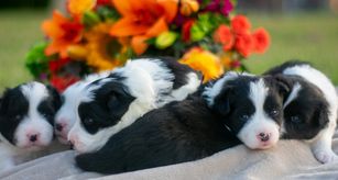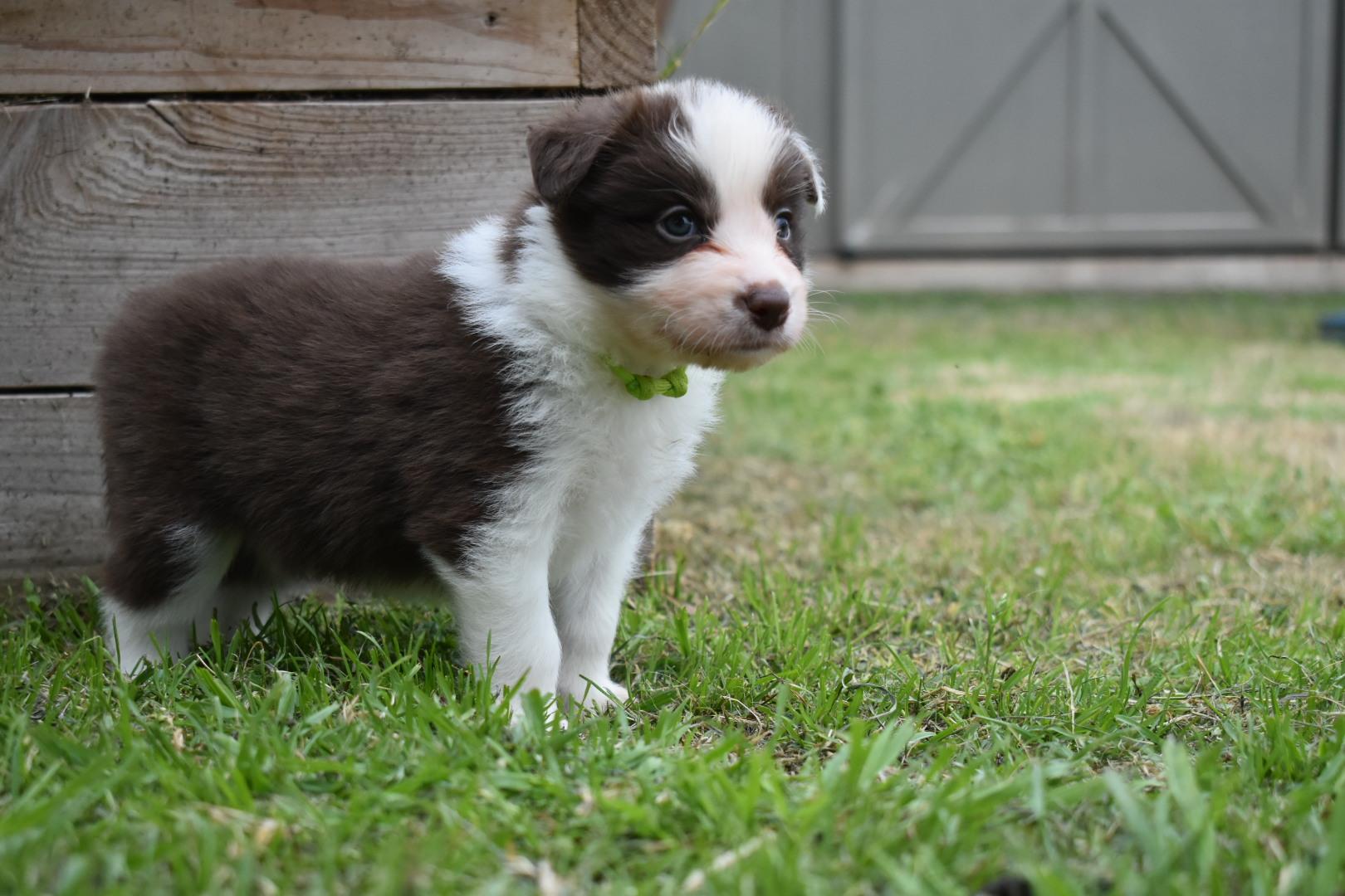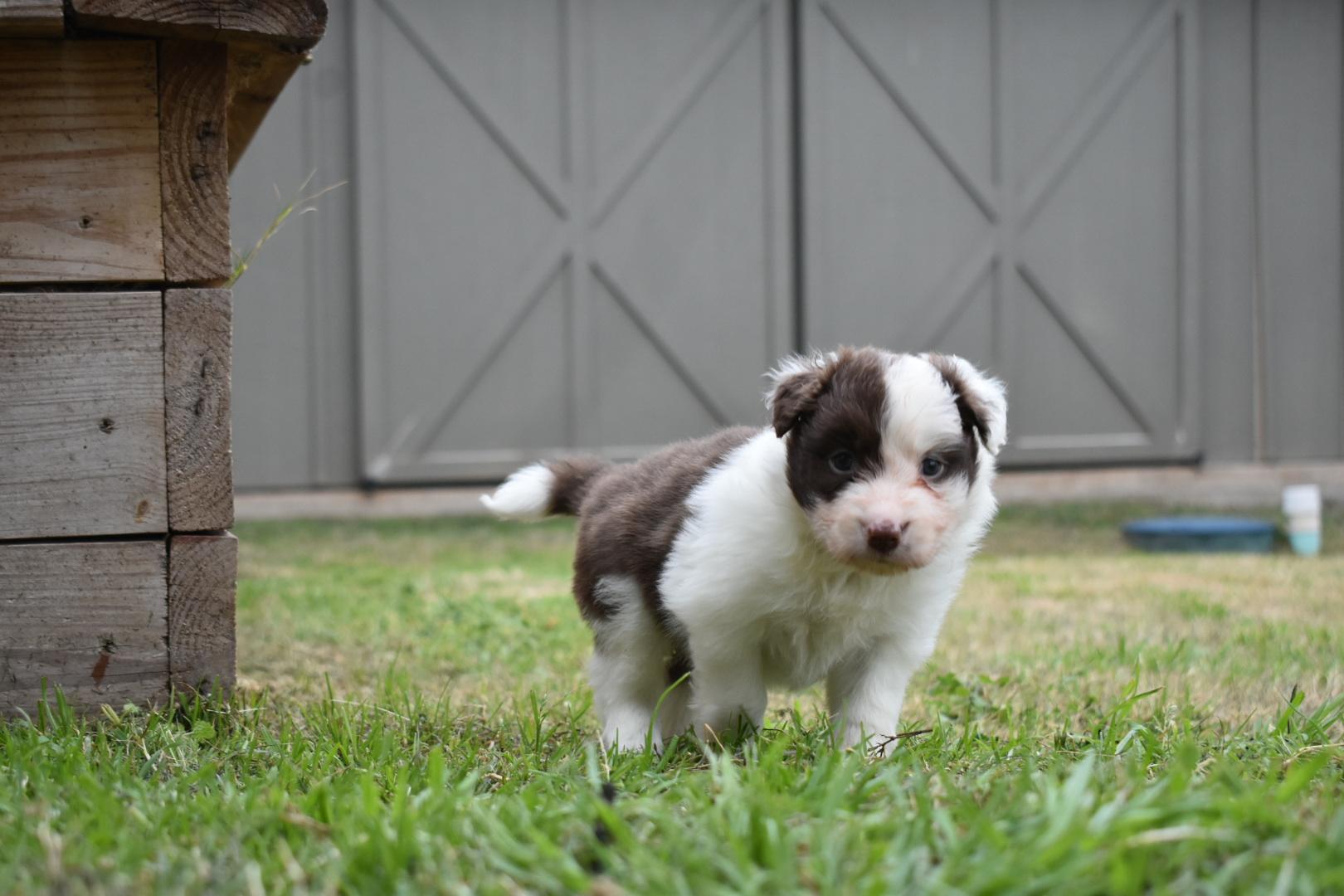 Our puppies include slate merle, black and white, blue merle, red merle, black, blue, red, white and blue, white and blue merle, white and red, and white and red merle. Colors will vary depending on the parent dogs.