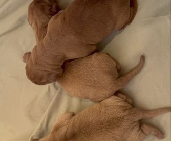 “A 250.00 deposit will hold your specific puppy pick such as first, second, and third. We take three deposits for each gender prior to the puppies being born. The remaining available puppies will then be posted to have deposits placed, such as fourth and fifth pick. Buyers are then added to a chat group that allows me to communicate with everyone, share photos, and allows buyers to stay in touch as their puppy grows.”