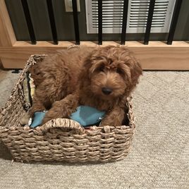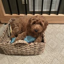 Adam was great to work with. He responds quickly and was very accommodating. We picked up Ruby on Monday and already she is ringing the bells to go out to potty only 2 days later. Very smart, sweet puppy. She will be very easy to train. Also, Adam began crate training before we got her. We put her in at night about 9:30 and we don’t hear from her till about 6. Adam also has a bag of supplies for you when u come to take your pup home. He also bathed her and had her nails clipped. We are so happy with her and she is already such a big part of our lives. Labradoodles are a great breed. Ruby is our third one. Thank you Adam!