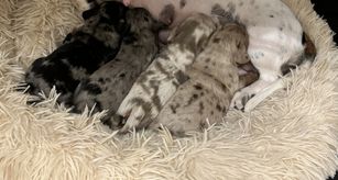 Our puppies include piebald, brindle, black and tan, and dapple. Colors will vary depending on the parent dogs.