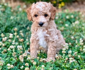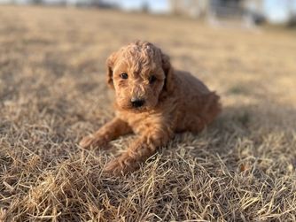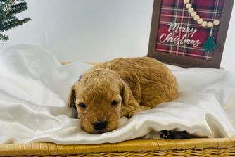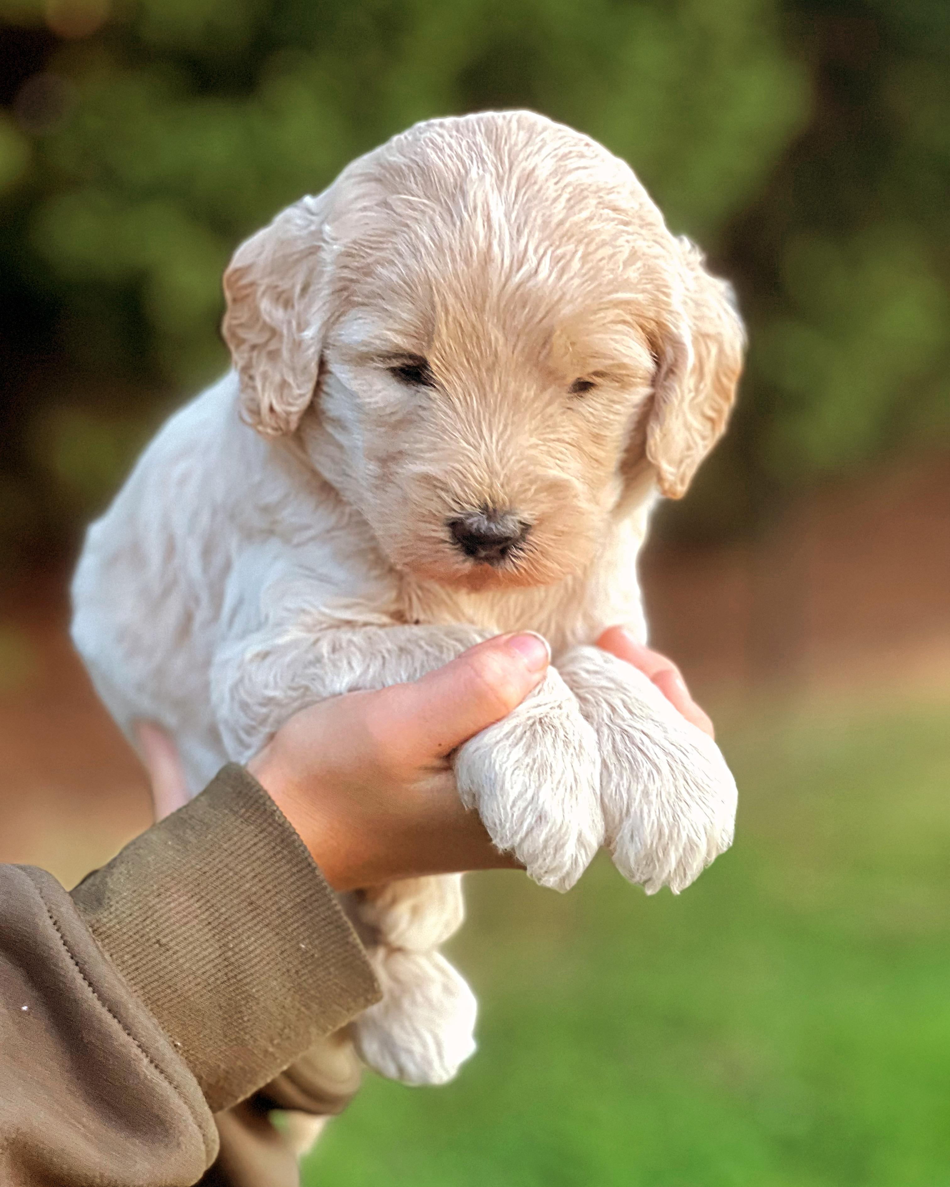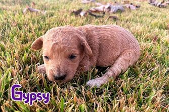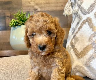 Our Goldendoodle puppies include cream, apricot, and red. Labradoodle puppies are red. Colors will vary depending on the parent dogs.
