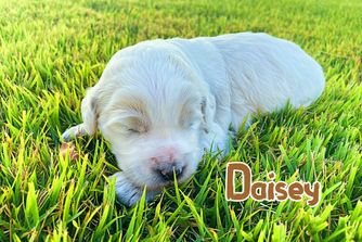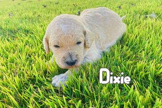 Gracie is a CKC registered white F1b Goldendoodle. She is a smaller Goldendoodle weighing 50 lbs. She is sweet and super loveable!