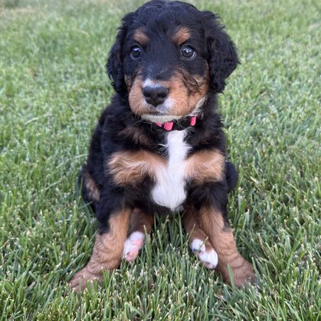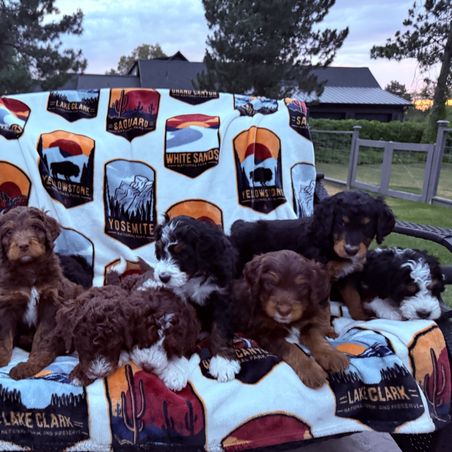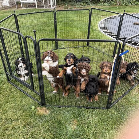 My program is rooted in a commitment to health, temperament, and ethical practices. I prioritize early socialization, breed-specific health testing, and love to see my puppies thrive with loving families. What makes my program truly special is my personalized approach, transparency, and unwavering dedication to producing happy, well-adjusted Bernedoodles that make perfect family companions.