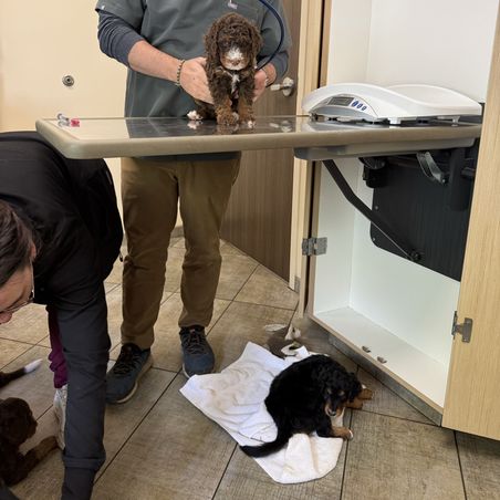 The vet was super impressed with the whole litter of puppies! He said they all look healthy, happy, and ready for their new homes! We will be sad to send them off, but so excited for their new families!! They bring such joy!! 💕