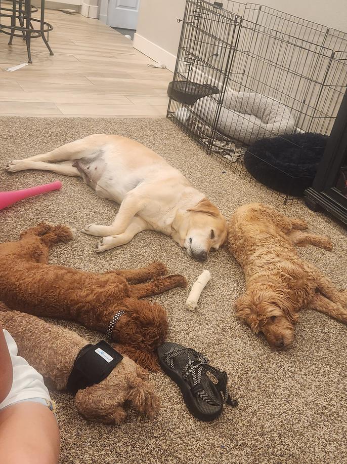 Thanksgiving meet up with other dogs in our extended family. These babies love to play- it lasted for about 5 minutes and now they are exhausted and down for a nap.