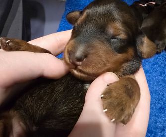 I'm Megan & Shane Z., the breeder behind Salt of the Earth Dachshunds located in Zebulon, NC. All of our dams/sires are tested per the recommendations of the Dachshund Club of America and are thoughtfully paired. We provide a 2 year genetic health guarantee and lifetime breeder support.