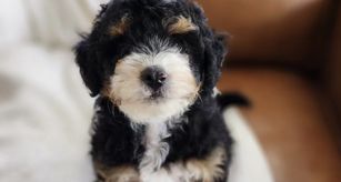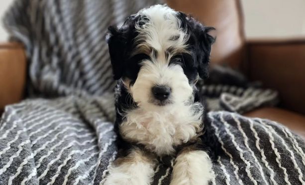 Our Bernedoodle puppies include tiny, mini, and medium sizes. Sheepadoodle puppies include miniature and medium sizes. Sizes will vary depending on the parent dogs.