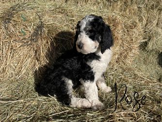 Our Poodle puppies are black. Bernedoodle puppies include sable, black, black and white, tri-color, and phantom. Colors will vary depending on the parent dogs.