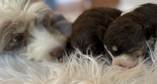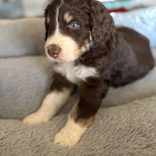 For one thing we are very small, and plan to produce 1 maybe 2 litters a year. I am committed to becoming the very best breeder using state of the art techniques to bring out the very best in our puppies and finding them loving homes. We will be breeding our Aussiedoodle with an exceptional multi-gen Bernedoodle stud early July and hope to have our first litter of Australian Mountain Doodles early September. Stay tuned!