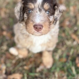 I'm Michelle G., the breeder behind Sammi Sweet Doodles located in Greenville, SC. Sammi, our F1 chocolate Merle Aussiedoodle is our inspiration to breed. She has brought immense joy to our family and to anyone who has ever come in her path. We are a very small family breeder and will only produce one or two litters a year with the focus on healthy, well-rounded puppies that can make other families and individuals just as happy as Sammi has made me!