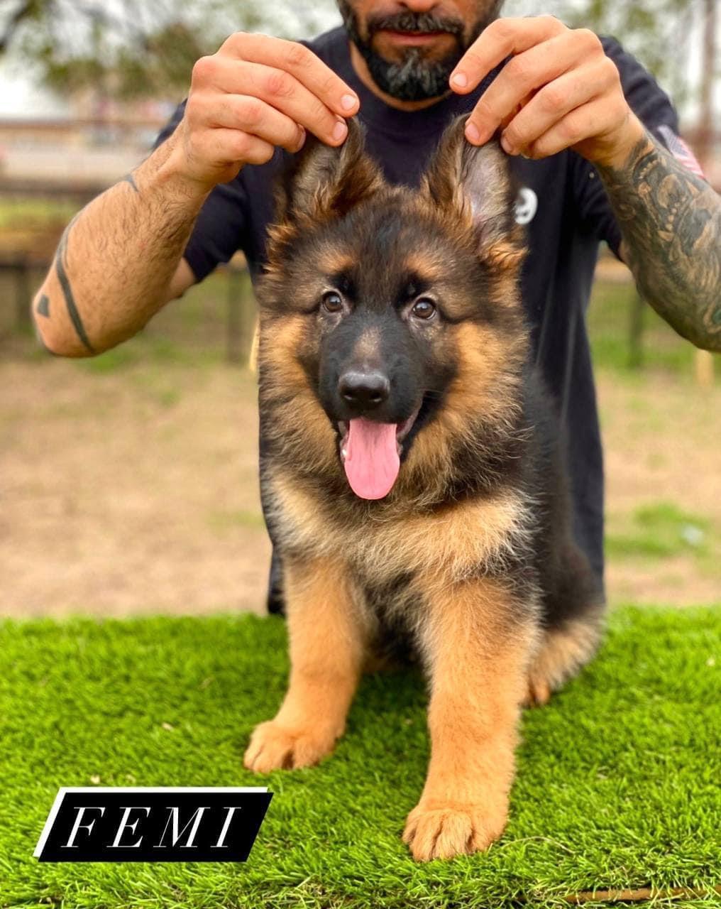 Due to the fact that Hero has proven to everyone what a wonderful male he is with his wonderful productions, we chose him for Ussi and since hero resides in Germany, Ussi went to Germany to mate with him and that's what happened. and after confirming Ussi's pregnancy, she came to America to give birth to her puppies in our kennel in Texas.