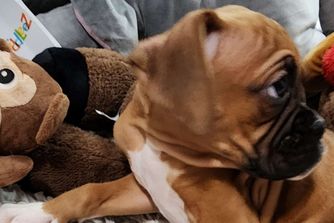 I rescued a boxer. I fell in love with the breed. I love how they are with children. I wanted to make a difference in the length of time we get to spend with them on earth. We health & temperament test each adult before they are bred.