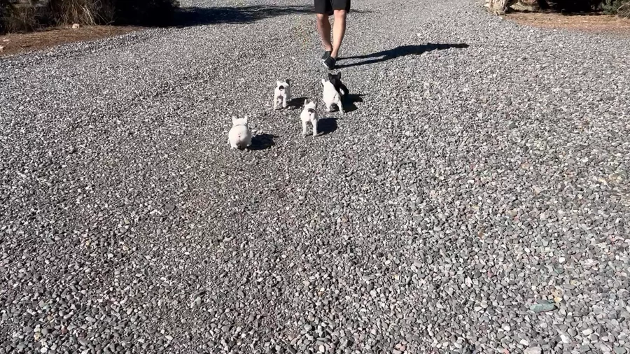 Such big kids now!! Doing pretty well with potty on the potty pads, and eating and drinking like big kids too!