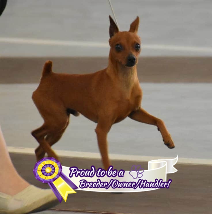 I have been involved in breeding and showing Miniature Pinschers for many years, and I have a great amount of knowledge and experience with the breed. I am committed to always having responsible policies when it comes to breeding, raising, and placing my puppies.