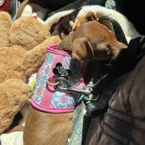 Dokie is a female Miniature Pinscher. Carefully selected as a great representative of her breed, Amy decided to make her part of their program. Amy has passed Good Dog’s screening process, which involved a review of their breeding practices, environment, and the mental and physical health of their dogs.