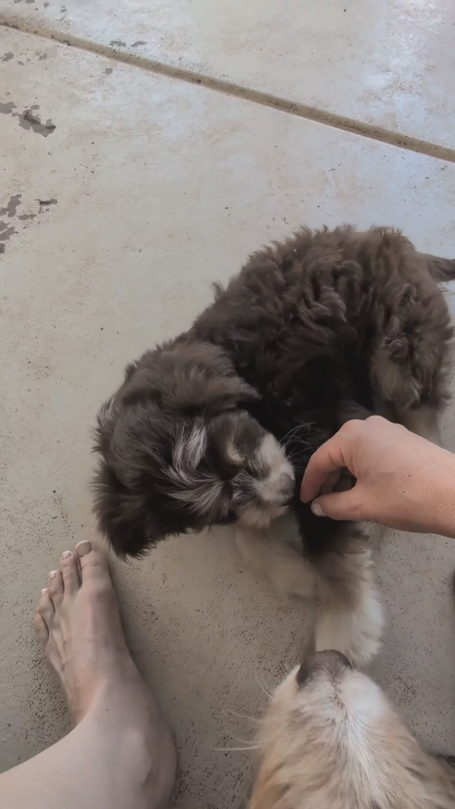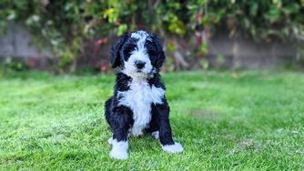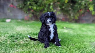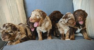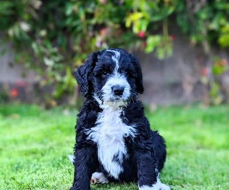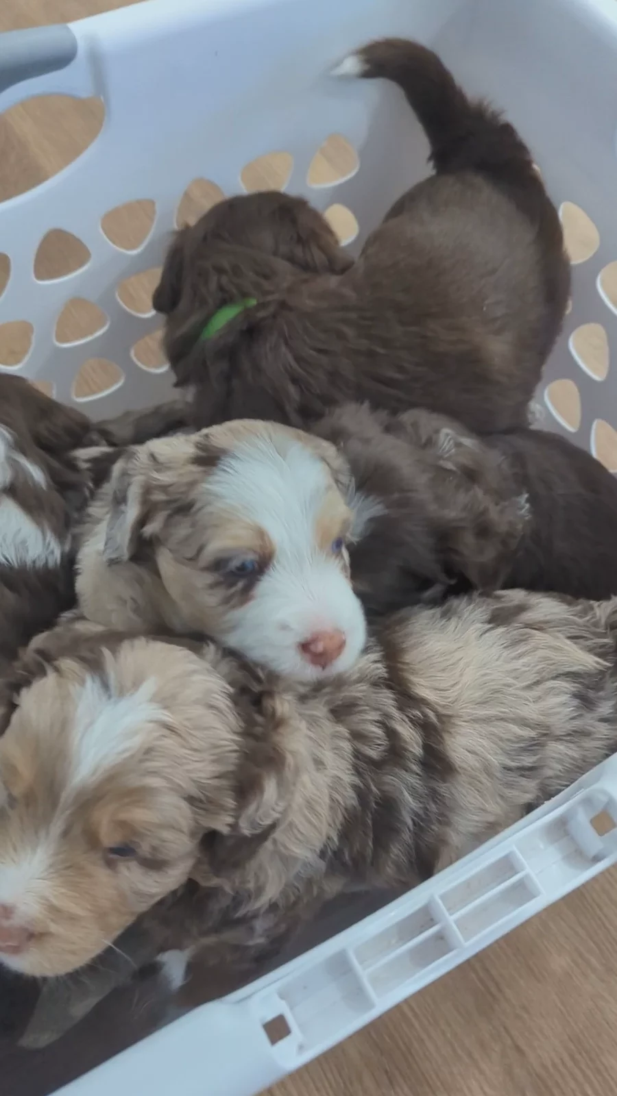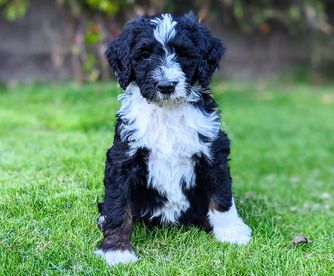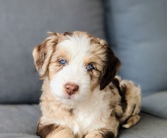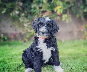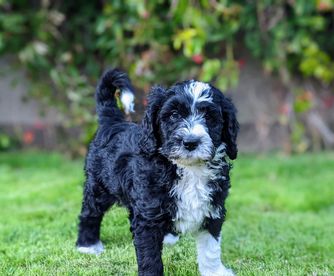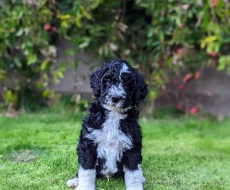 Our Bernedoodle puppies include tri-color, phantom, and merle. Aussiedoodle puppies include red merle and red tri-color. Colors will vary depending on the parent dogs.