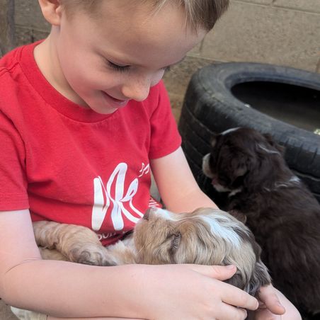 I'm Kristen M., the breeder behind San Tan Doodles located in Gilbert, AZ. We cherish each of our dogs and puppies, and we do everything we can to make sure that they get the best lives possible. That includes everything from choosing healthy parents with good temperaments, to proper socialization and daily care, to placing them in loving homes with wonderful families. We strive to provide each of our puppies and their families with a truly positive experience!