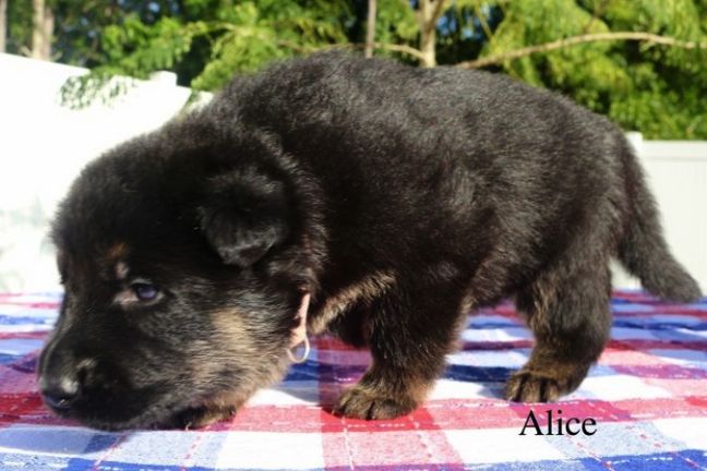 Alice is a female German Shepherd. Carefully selected as a great representative of her breed, Michelle decided to make her part of their program. Michelle has passed Good Dog’s screening process, which involved a review of their breeding practices, environment, and the mental and physical health of their dogs.